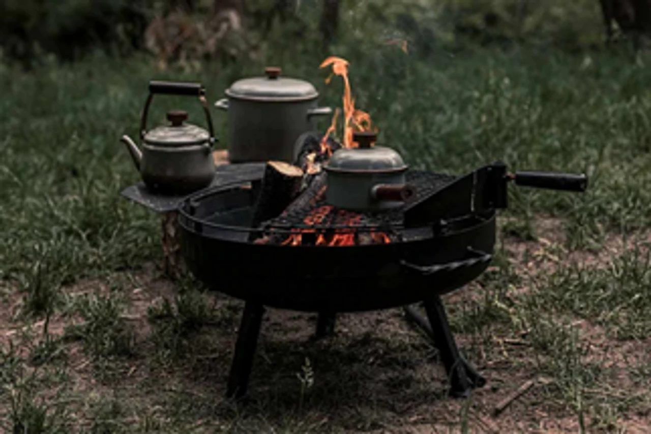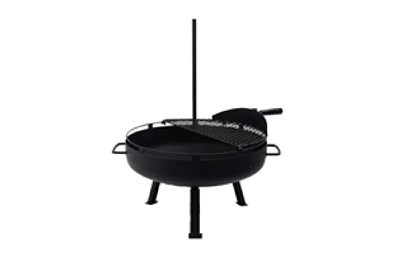 Full-size outdoor fire pit, cooking, and entertaining system Modular design allows for multi-use as fire pit and open-fire grilling/cooking station Multiple ways to cook over open-fire and charcoal Multiple configurations with cast iron and steel cooking accessories Easily portable with simple set up