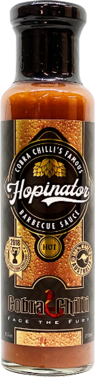 Hopinator Hot BBQ Sauce is the genius love child of Sydney Brewery and Cobra Chilli. Made with fresh tomato, fresh garlic, and fresh onion, Cobra Chilli have combined the sweet smoke flavours of molasses and Worcestershire with the bold and bitter tones of fan-favorite Potts Point Porter Beer to create a sauce that lets your taste buds know who’s boss.