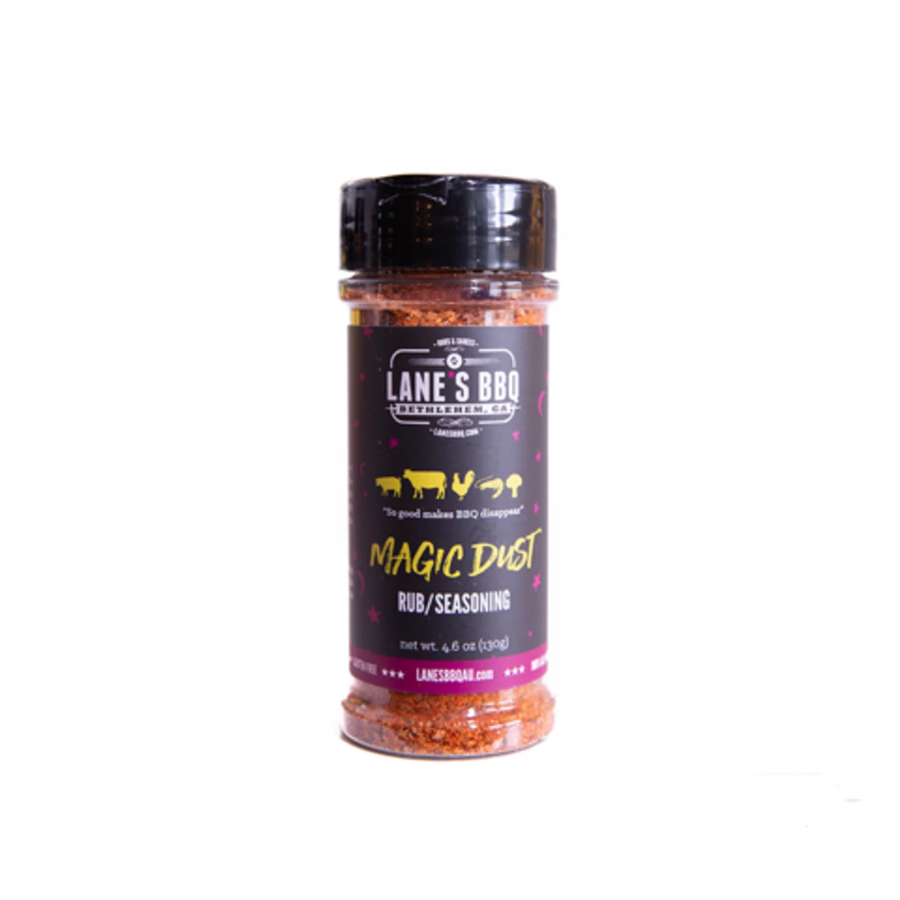 What started as an experiment, Magic Dust quickly enchanted the pitmasters at Lane’s BBQ. Legend has it that this rub combined with fire and smoke over time transforms meats into magical meals. Its Salty, Sweet and Smokey!