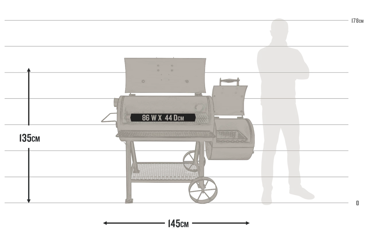 - Optional smokestack locations let you choose between reverse flow smoking and traditional offset smoking
