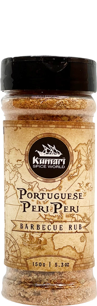Peri Peri is Portugal’s favourite choice for fast food: an entire chicken butterflied open and served alongside a halo of homemade French fries and pillows of rice. Each mouth-watering bite infuses the palate with juices from the meat and spices. Use this amazing Kumari rub directly on your chicken or make up a marinade with olive oil, garlic, lemon & wine.